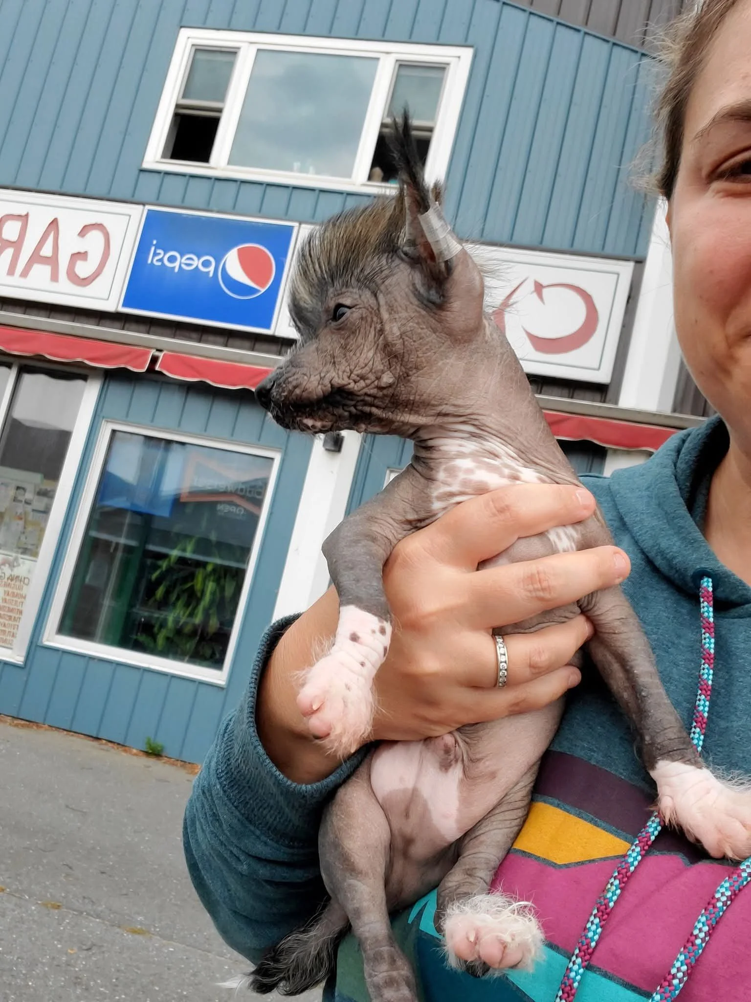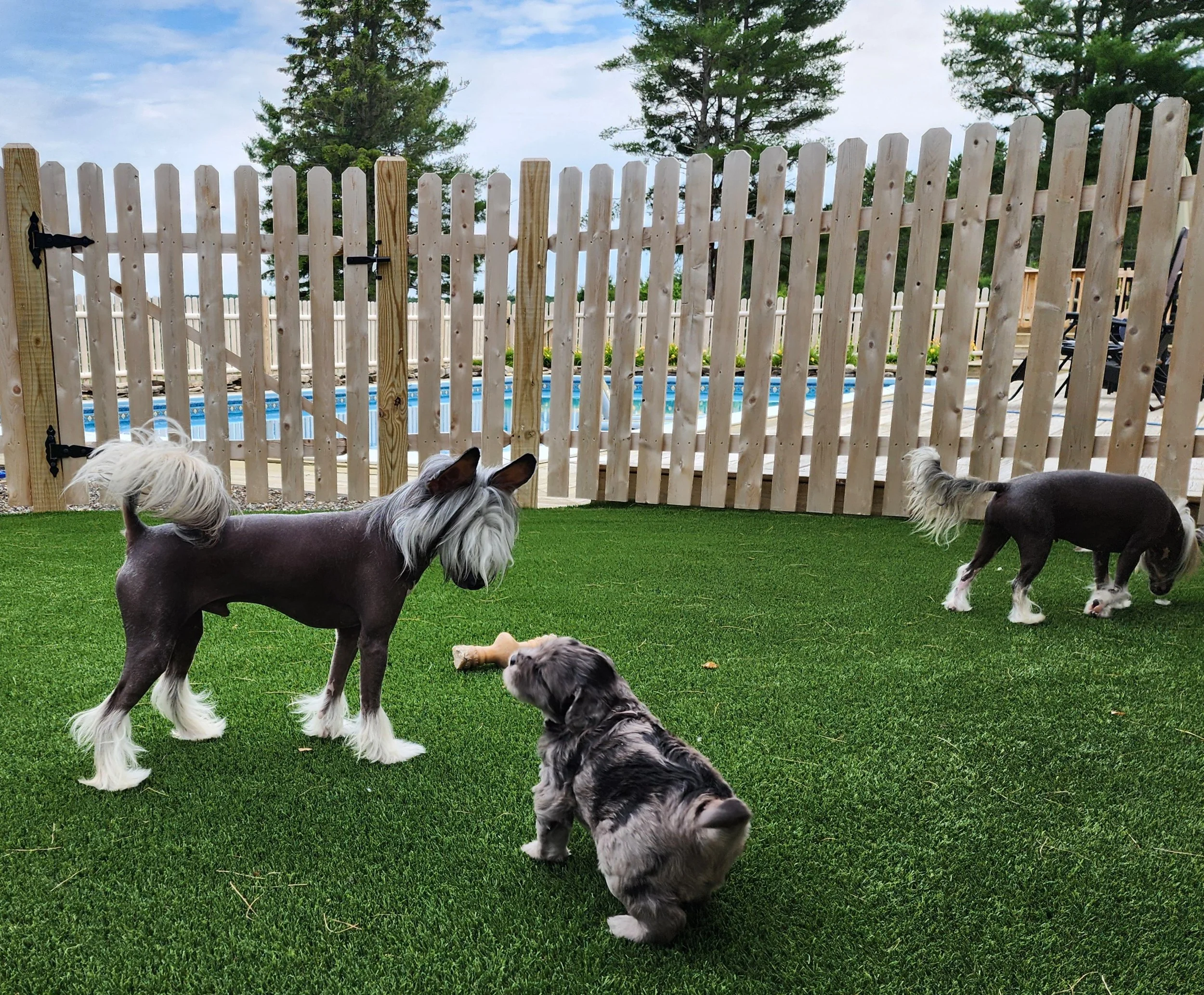 Persy socializing with our Chinese Cresteds